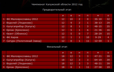 - http://footclubs.ru/index/chempionat_kaluzhskoj_oblasti_2012/0-1450