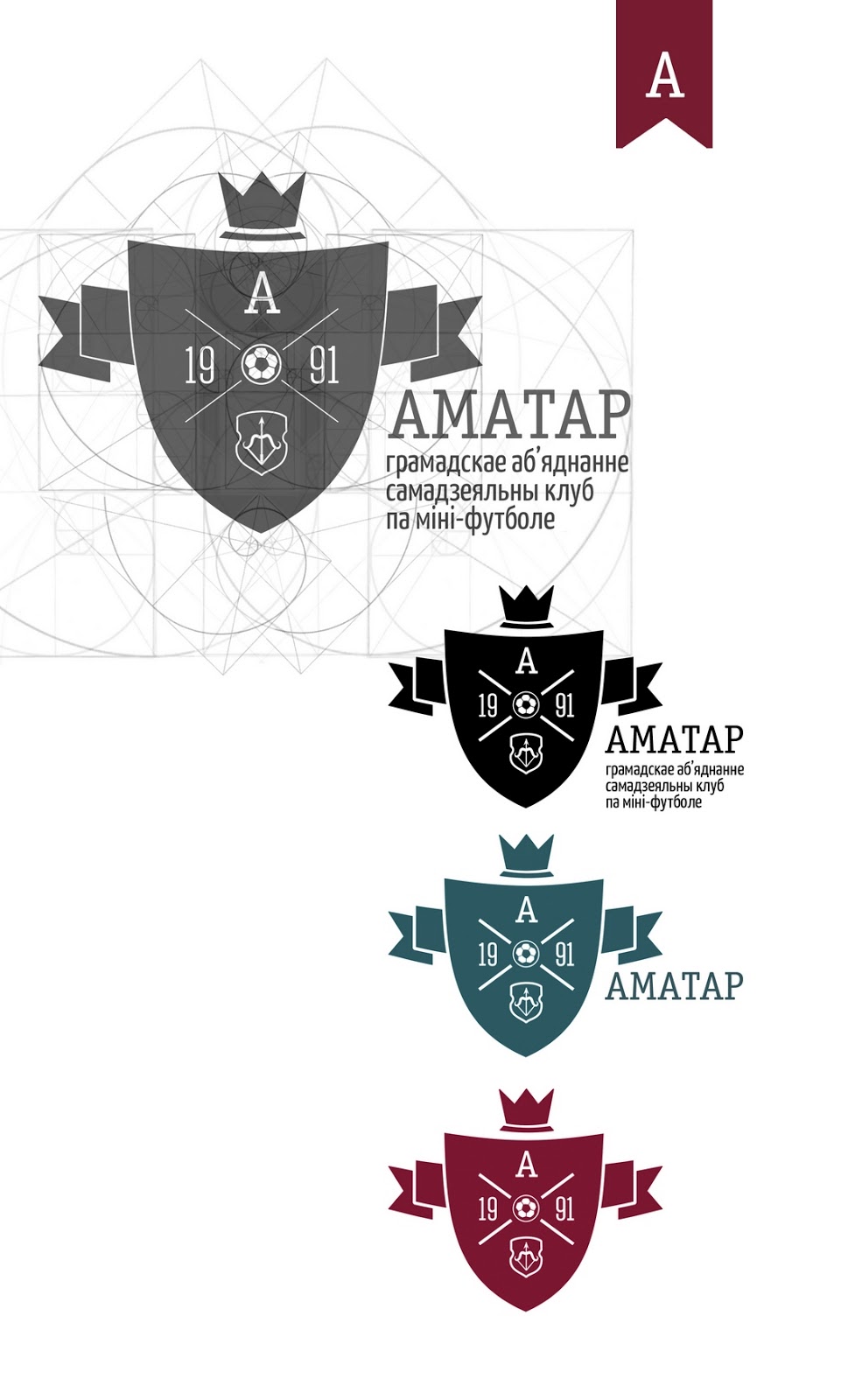 Здесь у нас была тема элитарности, "историчности" (клубу уже более 20-ти лет), беларускасці в европейском контексте (клуб имеет титул лучшего в Европе любительского клуба по мини-футболу - 2010). Не буду сильно вдаваться в маркетинговые дебри, если вкратце - мы сошлись на теме геральдики в современной интерпретации.
